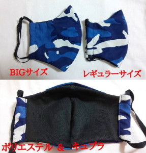 お世話になっているchigiri様ご協力の元、海を意識したカモフラブルーの洗える「吸汗速乾 日本製 立体布マスク」が完成しました!